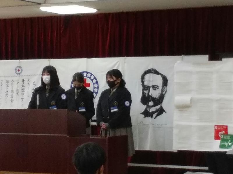 各校でできる範囲内での活動報告や、青少年赤十字福島支部の佐藤敦子先生による『講話 赤十字概論』をお聞きすることができました。赤十字の歴史から現在までの活動内容、奉仕の精神など普段の生活ではお聞きすることができない内容であり、生徒も真剣に聞いていました。今後のJRCの活動だけでなく、普段何気ない生活の中でも活かして欲しいと思います。